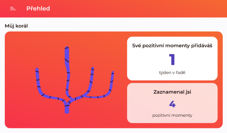 Aby měli žáci další motivaci pozitivní momenty zapisovat, pěstují si v aplikaci svůj vlastní korál pozitivních momentů. Za každý přidaný moment jejich korálu naroste nová větev. Pokud však celý týden žádný pozitivní moment nepřidají, poslední narostlá větev uschne. Aby se znovu obnovila, je potřeba přidat nový pozitivní moment. Teprve až jsou všechny suché části opět živé, začne korál přidáváním dalších pozitivních momentů znovu růst.